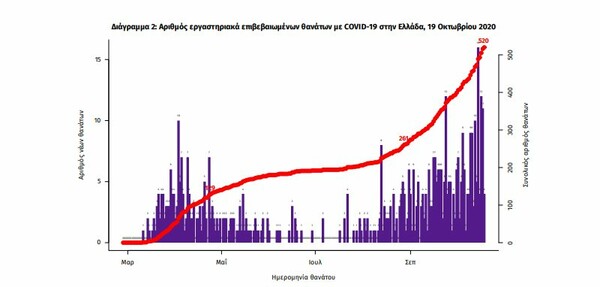 Σε ό,τι αφορά τους 520 ανθρώπους που έχουν χάσει τη ζωή τους έως τώρα, οι 197 ήταν γυναίκες (37,9%). Η διάμεση ηλικία των θανόντων ήταν τα 79 έτη και το 96,2% είχε κάποιο υποκείμενο νόσημα ή/και ηλικία 70 ετών και άνω.