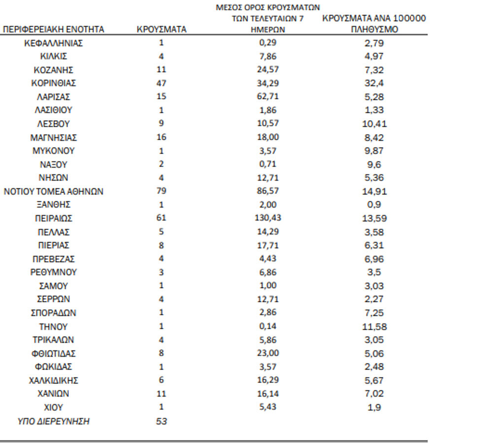 Αναλυτικά ο χάρτης των εγχώριων κρουσμάτων