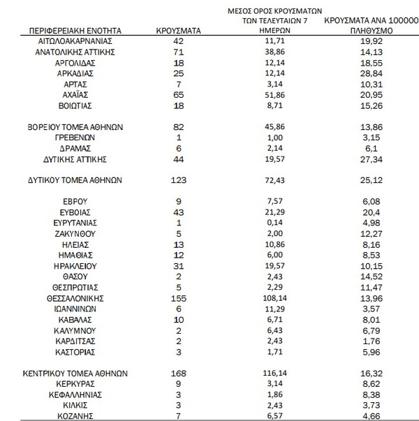 Ο «χάρτης» των εγχώριων νέων κρουσμάτων κορωνοϊού
