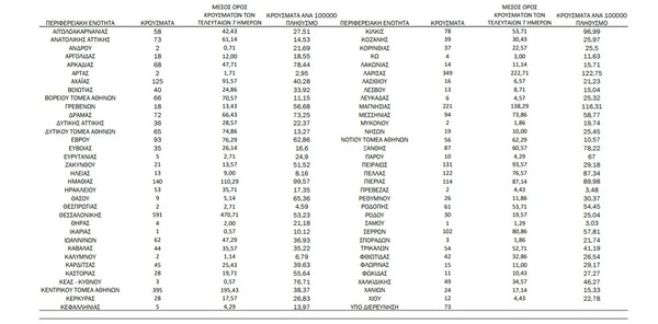 Ακολουθεί η Θεσσαλονίκη όπου καταγράφηκαν 591 νέες μολύνσεις. Αυξημένα παραμένουν τα κρούσματα και στη Λάρισα με τον ΕΟΔΥ να ανακοινώνει 349 σήμερα.