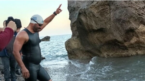 Με αφετηρία την Ρόδο ο Παραολυμπιονίκης Χαράλαμπος Ταϊγανίδης έφτασε κολυμπώντας στον Πανορμίτη Σύμης.