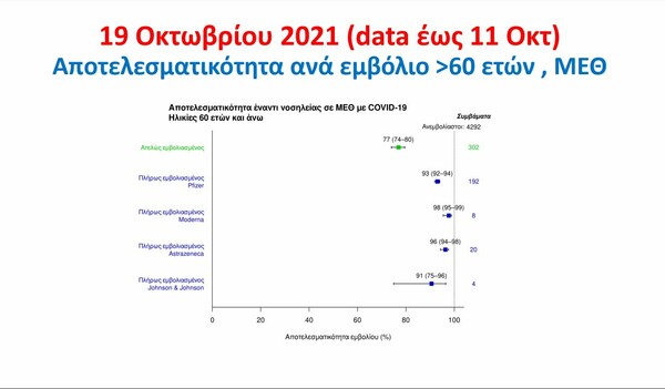 Αποτελεσματικότητα ανά εμβόλιο >60 ετών έναντι νοσηλείας σε ΜΕΘ με Covid-19