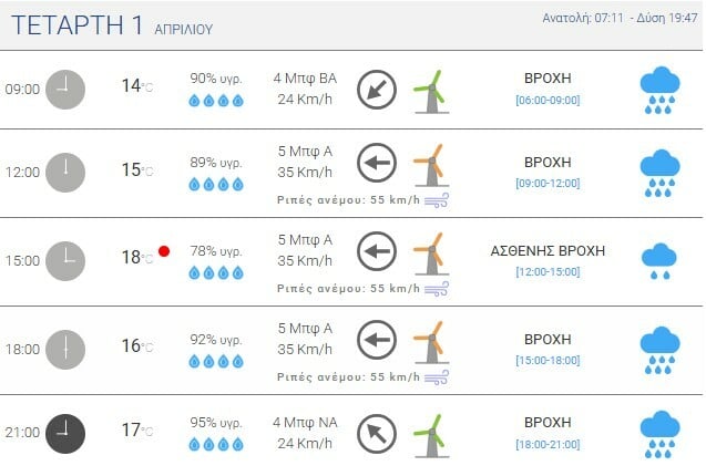 ΚΑΙΡΟΣ ΓΙΑ ΣΗΜΕΡΑ ΤΕΤΑΡΤΗ 01-04-2026