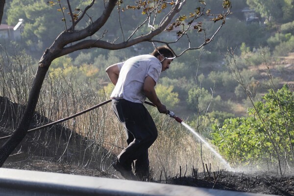 Νωρίτερα, η αναστάτωση από την φωτιά στην περιοχή ήταν μεγάλη και αρκετοί κάτοικοι βγήκαν με λάστιχα να προστατέψουν τις κατοικίες τους.