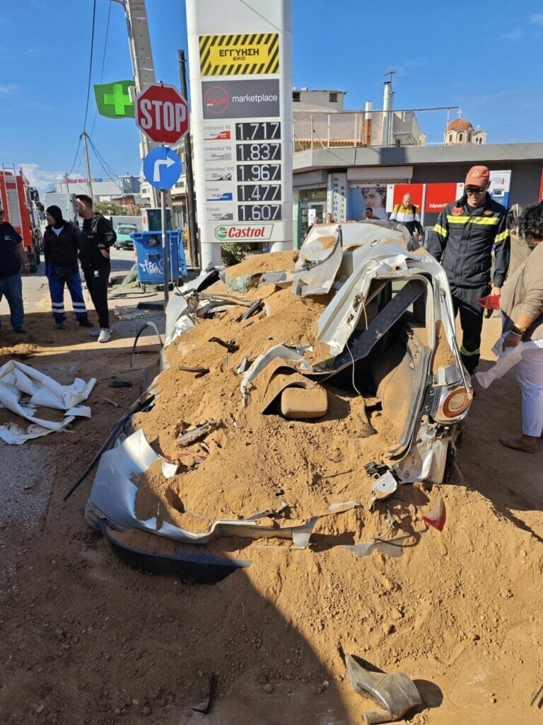 Ο οδηγός της φέρεται να έχασε τον έλεγχο του οχήματος, με αποτέλεσμα αυτό να ανατραπεί και να πέσει πάνω στο ΙΧ, συνθλίβοντας το, όπως διακρίνεται και στις εικόνες από το σφοδρό ατύχημα.