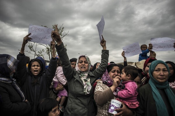 Σήμερα δεν επετράπη σε αλληλέγγυους και συλλογικότητες να μπούνε στον καταυλισμό (στο στρατόπεδο "Ευθυμιόπουλου"). Μετανάστες και πρόσφυγες φώναξαν συνθήματα και έγραψαν συνθήματα σε χαρτιά, ζητώντας να ανοίξουν τα σύνορα.