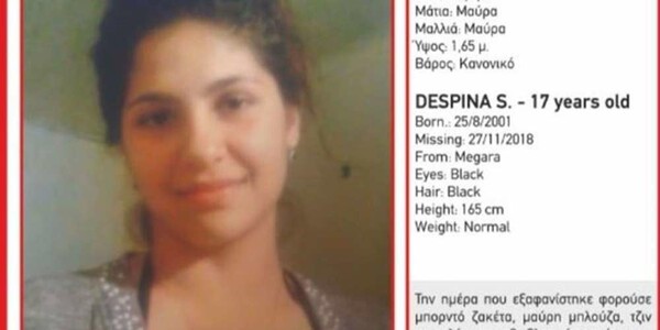 Συναγερμός έχει σημάνει στην αστυνομία μετά την εξαφάνιση της 17χρονης Δέσποινας Σ. από τα Μέγαρα. Οι αρχές ενημερώθηκαν για την εξαφάνιση της από το Χαμόγελο του Παιδιού.