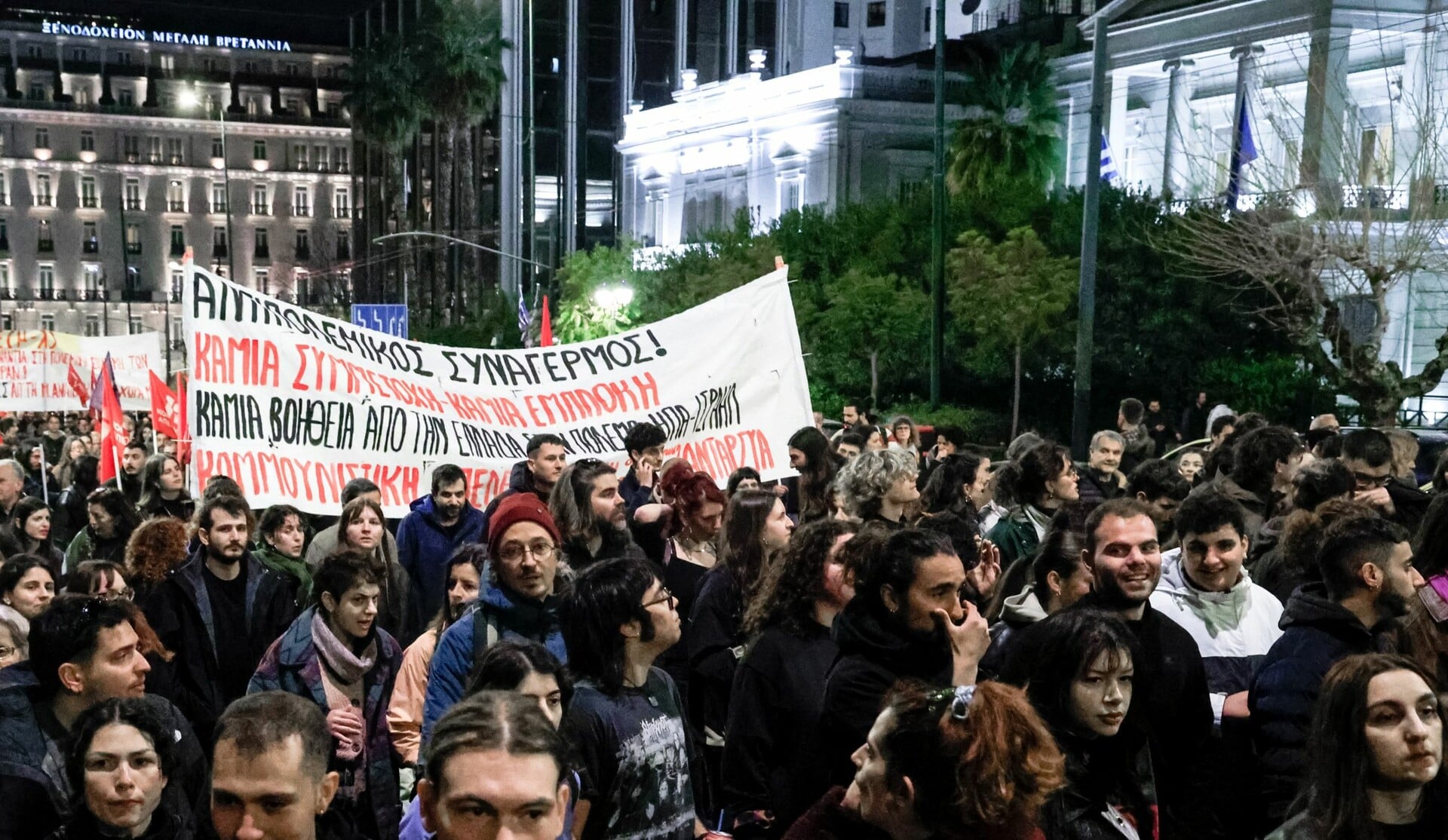 Με αφορμή την αντιπολεμική συγκέντρωση διαμαρτυρίας για τον πόλεμο στη Μέση Ανατολή, στο Σύνταγμα, οι αστυνομικές δυνάμεις προχώρησαν στην εφαρμογή κυκλοφοριακών ρυθμίσεων στους δρόμους γύρω από την πλατεία.