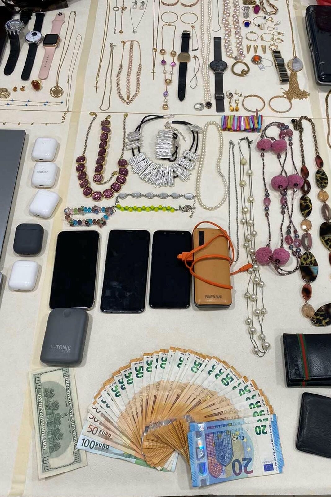 Οι δράστες αφαιρούσαν χρήματα, φορητούς υπολογιστές, ηλεκτρονικές συσκευές, τσάντες-πορτοφόλια, κινητά τηλέφωνα, ρολόγια, γυαλιά ηλίου, αρώματα, τιμαλφή κ.α.