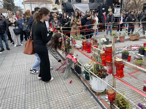 Μνημείο για τα 57 θύματα στα Τέμπη, αποκαλύφθηκε στην πλατεία του ΟΣΕ στη Λάρισα όπου κατέληξε η πορεία για τον ένα χρόνο από την σιδηροδρομική τραγωδία.