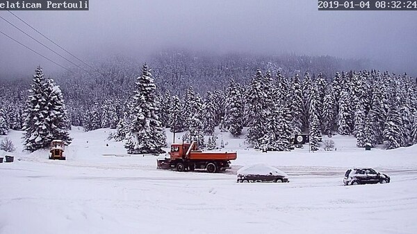 Στο Περτούλι το ύψος του χιονιού είναι πάνω από ένα μέτρο ενώ χιόνι προβλέπεται να πέσει μέχρι το μεσημέρι και στην πόλη των Τρικάλων.