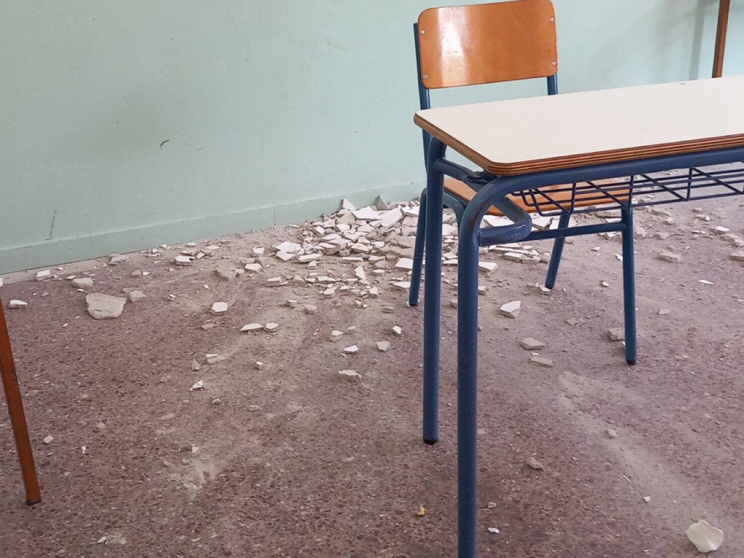 Οι μαθητές της πρώτης τάξης του 3ου ΓΕΛ Θεσσαλονίκης είδαν σοφάδες να πέφτουν από το ταβάνι της σχολικής τους αίθουσας. Σύμφωνα με τις πληροφορίες μάλιστα, από τύχη δεν τραυματίστηκε κανείς, καθώς κάποιοι από τους μαθητές απουσίαζαν και ήταν άδεια τα θρανία στο σημείο όπου έπεσαν οι σοβάδες.