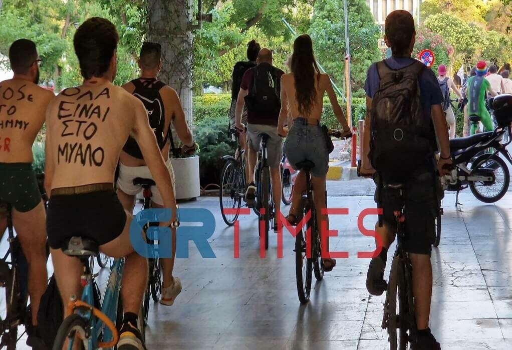 «Ποδήλατα στην πόλη για να χωράμε όλοι» φώναξαν σήμερα οι συμμετέχοντες στη 16η γυμνή ποδηλατοδρομία της Θεσσαλονίκης.