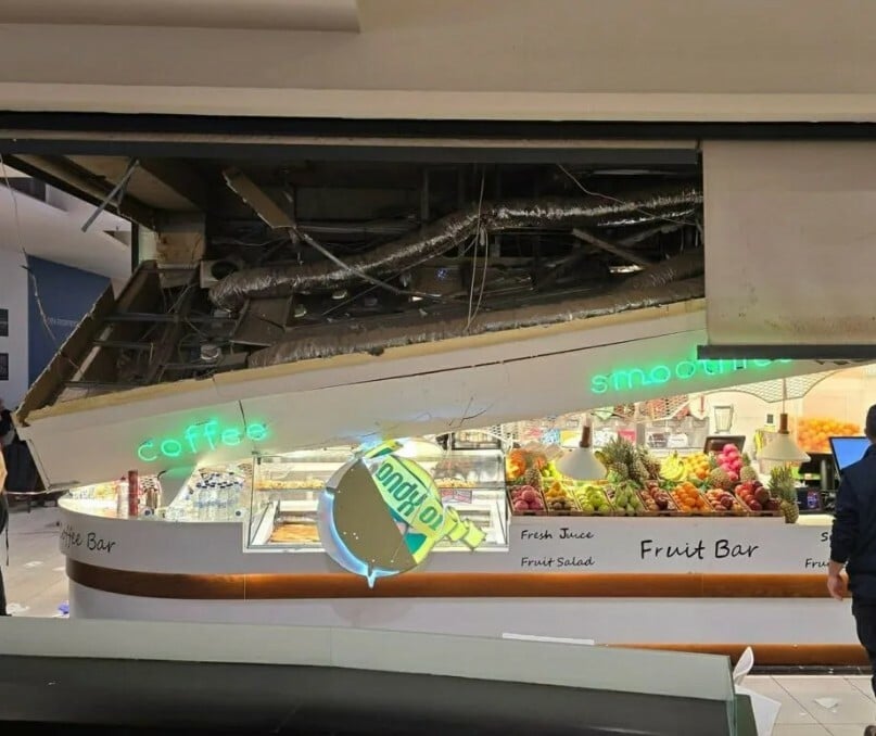 Από τη μερική υποχώρηση της ψευδοροφής τραυματίστηκε μία γυναίκα που βρισκόταν στο σημείο εκείνη τη στιγμή.
