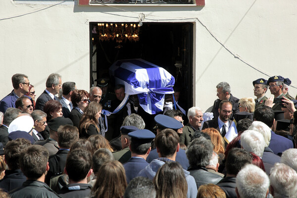 Εκατοντάδες άνθρωποι συνόδευσαν τη σορό του συνταγματάρχη Θωμά Αδάμου στην τελευταία του κατοικία από το Παλαιοκκλήσι Καρδίτσας.