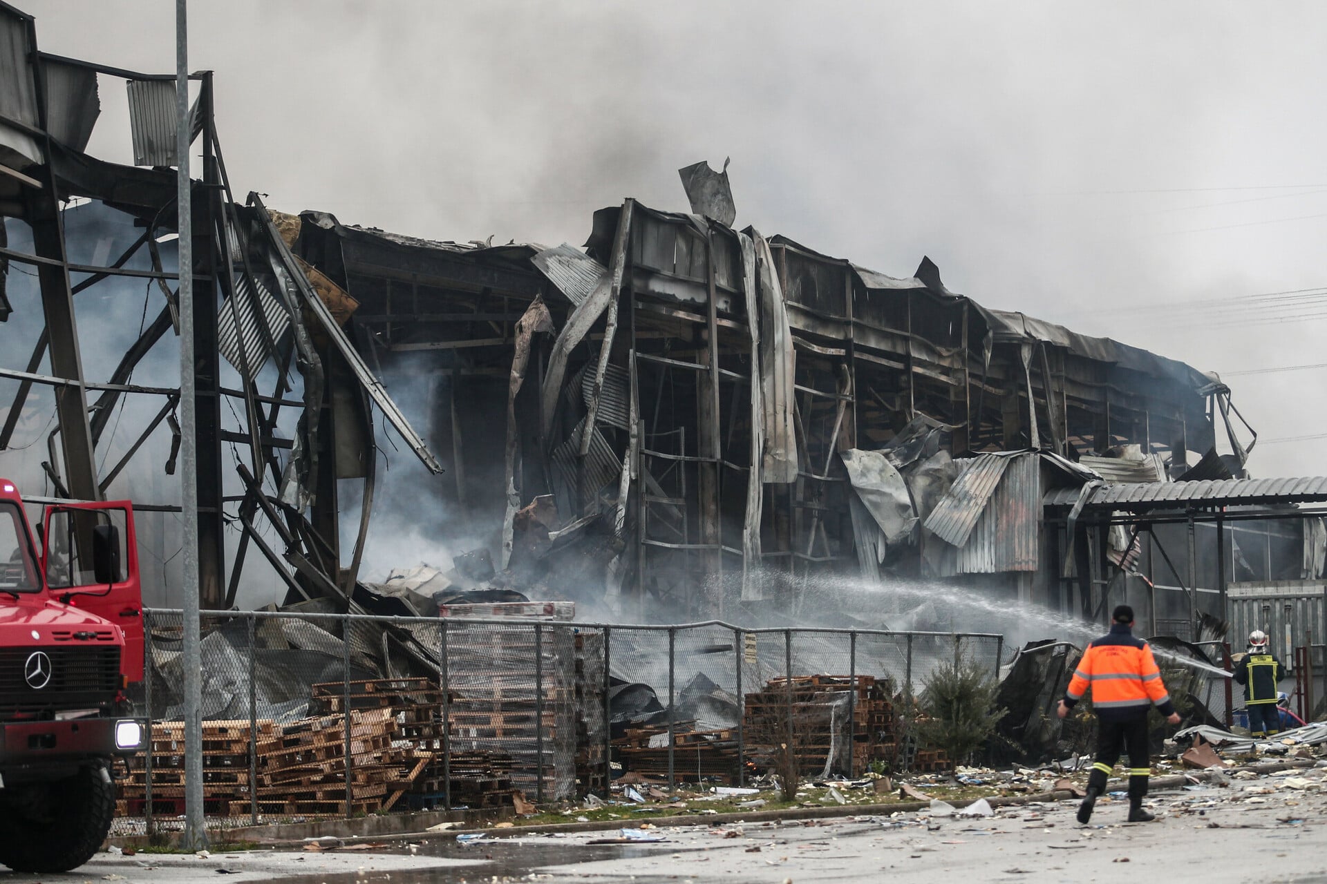 Μάλιστα, η έκρηξη ήταν τόσο ισχυρή που το ωστικό κύμα οδήγησε στην κατάρρευση της οροφής. Τμήμα τοίχου εκτοξεύθηκε στην απέναντι πλευρά του εργοστασίου, ενώ στη συνέχεια κατέρρευσε και η οροφή.