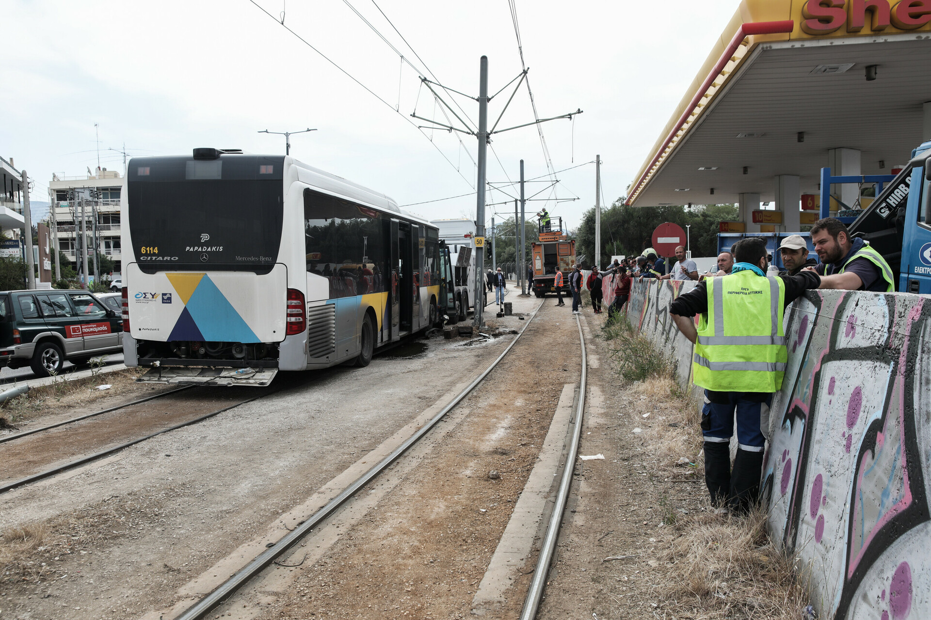 Στο σημείο στήθηκε επιχείρηση για την απομάκρυνση του οχήματος και έχουν διακοπεί τα δρομολόγια του τραμ μέχρι να καθαριστεί ο δρόμος.