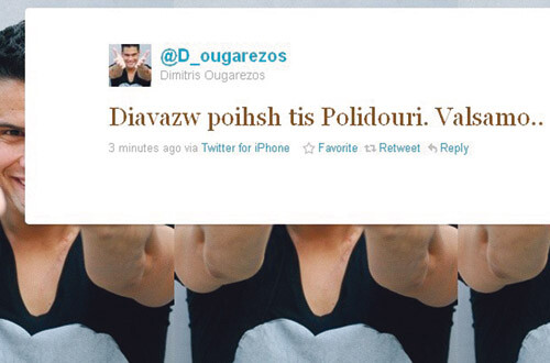 Το ελληνόφωνο ήταν φυσικά αυτό του τηλεπαρουσιαστή Δημήτρη Ουγγαρέζου (φωτό) που μας ενημέρωσε πως διαβάζει ποίηση της Μαρίας Πολυδούρη («βάλσαμο»!), θυμίζοντας στους κακοπροαίρετους την εποχή που η Έφη Σαρρή δήλωνε πως διαβάζει Ηράκλειτο. Το ξενόγλωσσο tweet της εβδομάδας ήρθε όμως απ' την rubadubadu: