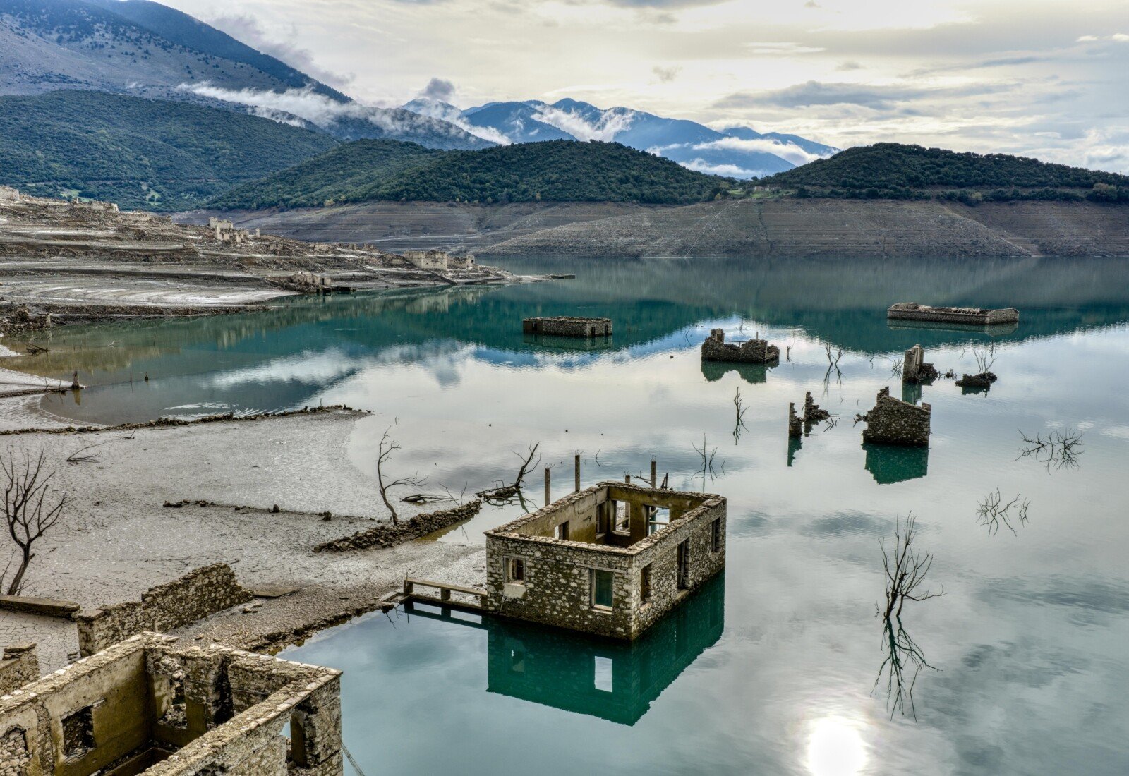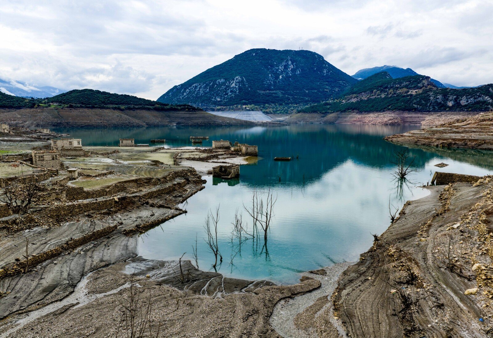 Η λίμνη του φράγματος του Μόρνου, από το οποίο εξασφαλίζει την παροχή νερού, βρίσκεται σε χαμηλά επίπεδα, παρά τις βροχοπτώσεις.
