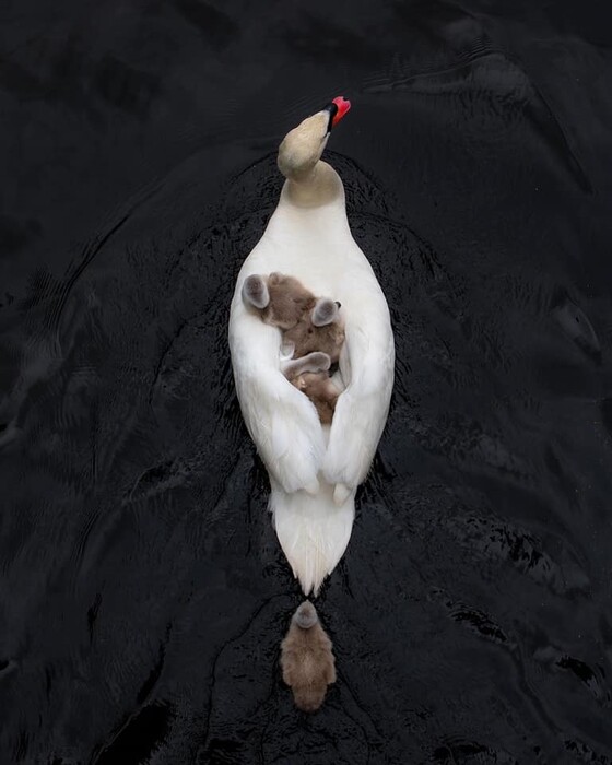 Ο φωτογράφος Matthew Raifman κατέγραψε με τον φακό την τρυφερή στιγμή που ο πατέρας κύκνος έφτιαξε μια μικρή φωλιά με τα φτερά του, για να διασχίσει το ποτάμι με τα νεογέννητα.