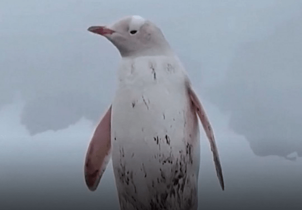 Ένας σπάνιος, ολόλευκος πιγκουίνος βιντεοσκοπήθηκε να περιπλανιέται στην Ανταρκτική.