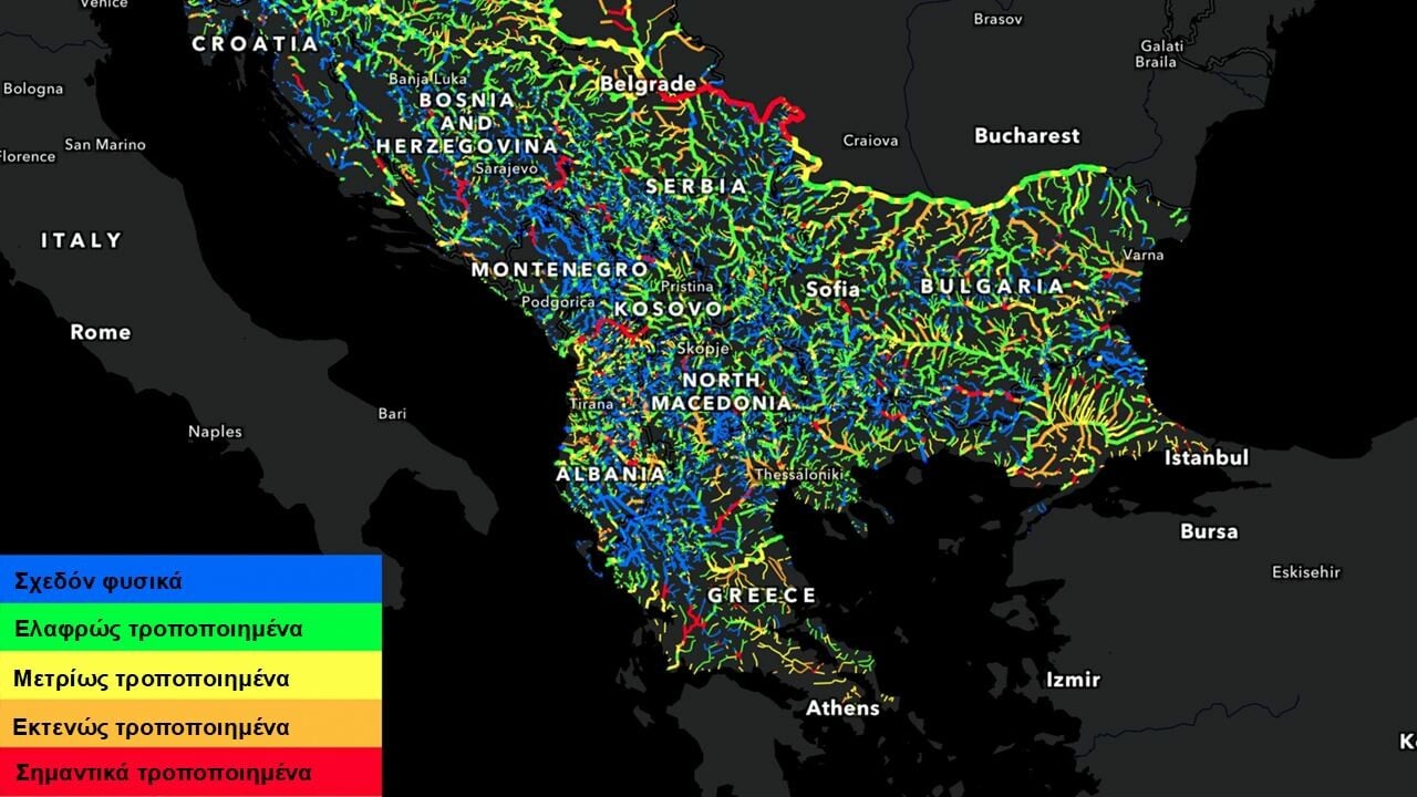 Στα Βαλκάνια, όπως τονίζει ο κ. Σακελλαράκης, τα ποτάμια της περιοχής προσπαθούν να διατηρήσουν, ακόμη, μια καλή οικολογική κατάσταση και να έχουν αρκετά τμήματα με οικολογική συνδεσιμότητα, δηλαδή έχουν ελεύθερη ροή και έχουν διατηρήσει τα φυσικά τους χαρακτηριστικά. Ωστόσο όπως καταδεικνύεται από την μελέτη από το 2012 έως το 2025 παρατηρείται μία αρνητική τάση καθώς μέσα σε 13 χρόνια έχουν χαθεί 2.500 χιλιόμετρα ελεύθερων ποτάμιων διαδρόμων.