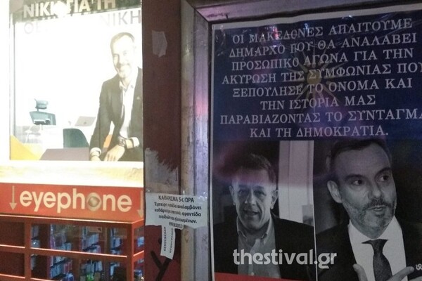 Άγνωστοι κόλλησαν αφίσες για τη Μακεδονία στα εκλογικά κέντρα του Νίκου Ταχιάου και του Κωνσταντίνου Ζέρβα σήμερα τα ξημερώματα στη Θεσσαλονίκη.