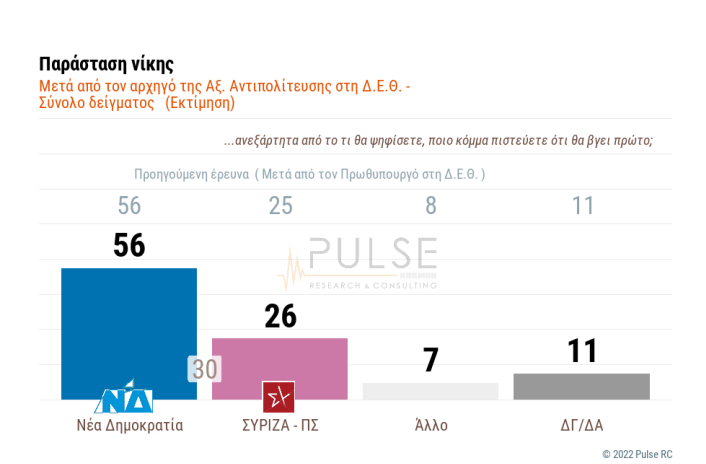 Στην παράσταση νίκης, πριν από τη ΔΕΘ η ΝΔ συγκέντρωνε το 56% και ο ΣΥΡΙΖΑ το 24%.