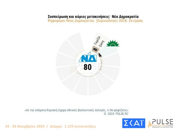 Στις 10 ποσοστιαίες μονάδες είναι το προβάδισμα που καταγράφει η Νέα Δημοκρατία έναντι του ΠΑΣΟΚ-ΚΙΝΑΛ, που έχει πλέον τον ρόλο της αξιωματικής αντιπολίτευσης, σύμφωνα με τα στοιχεία της δημοσκόπησης της Pulse.