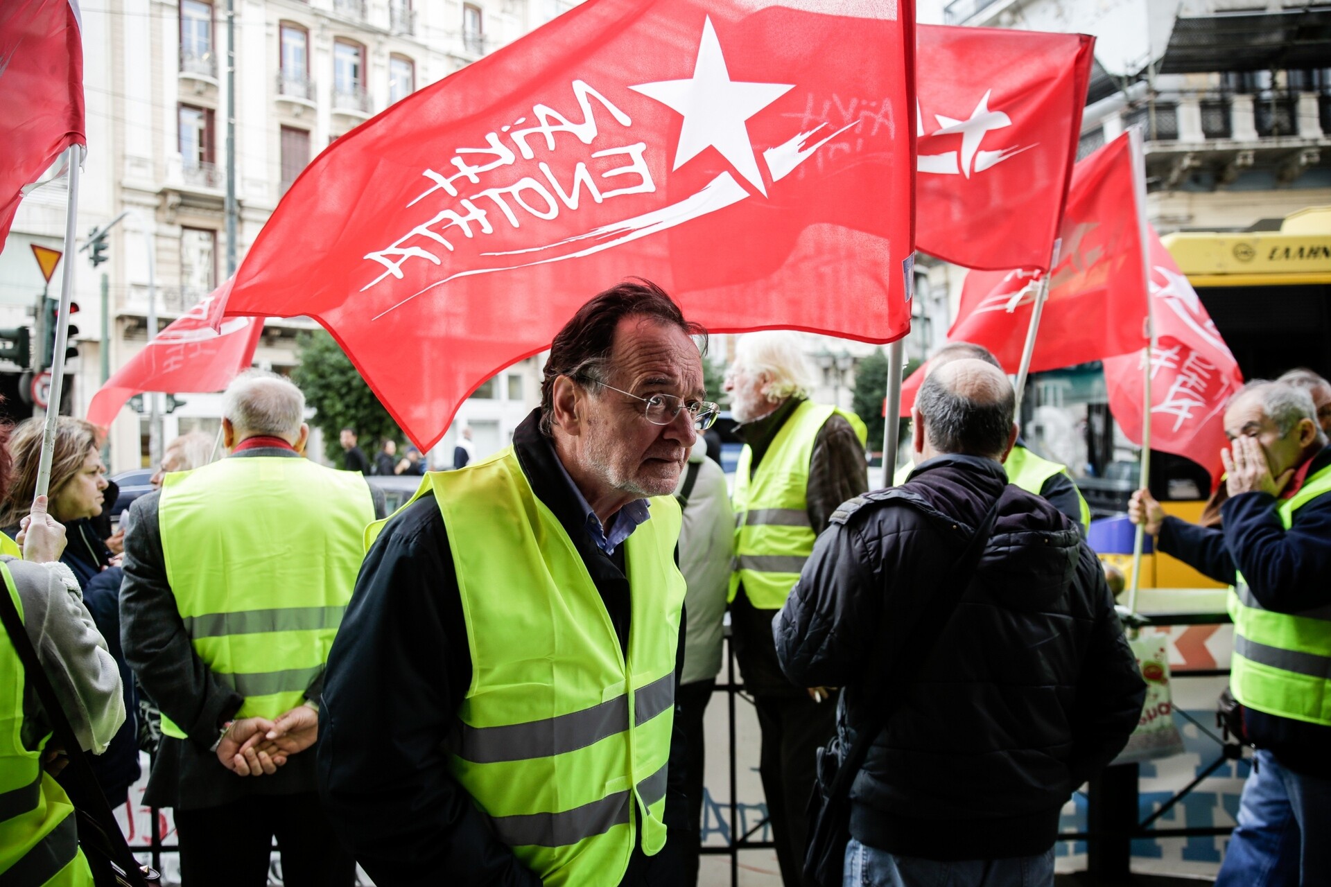 Εκδήλωση αλληλεγγύης στο κίνημα των «κίτρινων γιλέκων» και ενάντια στον «αυταρχισμό της κυβέρνησης Μακρόν» διοργάνωσε σήμερα η Λαϊκή Ενότητα.