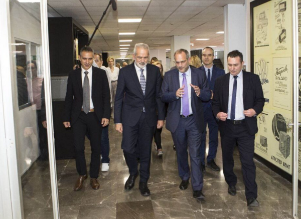 Ο Ιωάννης Σαρμάς ξεναγήθηκε στις εγκαταστάσεις κι επισκέφτηκε το νέο ertnews studio με τα νέα ψηφιακά εργαλεία. Ενημερώθηκε για τις λειτουργίες του control room και του studio των ειδήσεων.