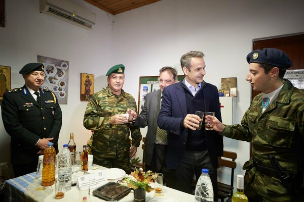 Ο κ. Μητσοτάκης επισκέφθηκε το φυλάκιο «Κασιωτών Αγωνιστών» της ακριτικής νήσου όπου υπηρετούν ένας αξιωματικός, τέσσερις οπλίτες και Δυνάμεις Εθνοφυλακής και αντάλλαξε ευχές με τα στελέχη των Ενόπλων Δυνάμεων.
