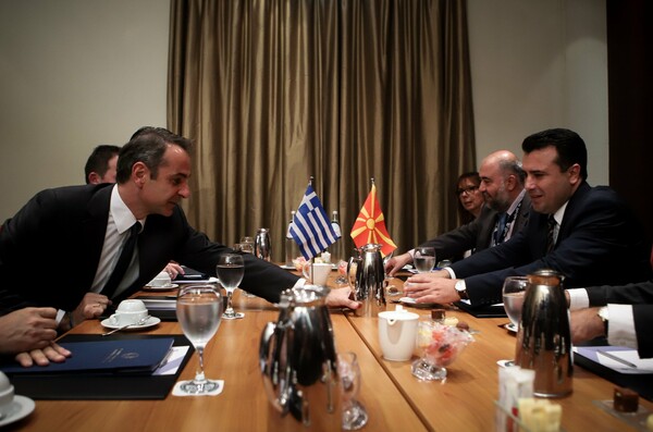 Όπως αναφέρει το γραφείο Τύπου του πρωθυπουργού, ο κ. Μητσοτάκης «επανέλαβε την κριτική του στη Συμφωνία των Πρεσπών, τόνισε όμως ότι από τη στιγμή που δεσμεύει τις δύο χώρες, είναι προϋπόθεση για την ευρωπαϊκή πορεία, πρέπει να εφαρμοστεί και να αποφευχθούν ενέργειες που συντηρούν την ένταση». Επίσης, «οι δύο πρωθυπουργοί συμφώνησαν πως η εμπέδωση των σχέσεων καλής γειτονίας, καθώς και η περιφερειακή συνεργασία, παραμένουν ουσιώδη κριτήρια για όλα τα στάδια της ενταξιακής διαδικασίας, αλλά και για την ενίσχυση των διμερών μας σχέσεων».
