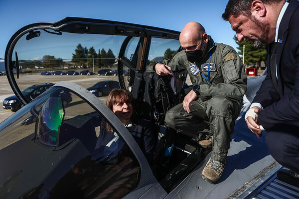 Στην Τανάγρα βρέθηκε σήμερα, Πέμπτη, η Πρόεδρος της Δημοκρατίας, Κατερίνα Σακελλαροπούλου, όπου μπήκε σε πιλοτήριο Rafale.