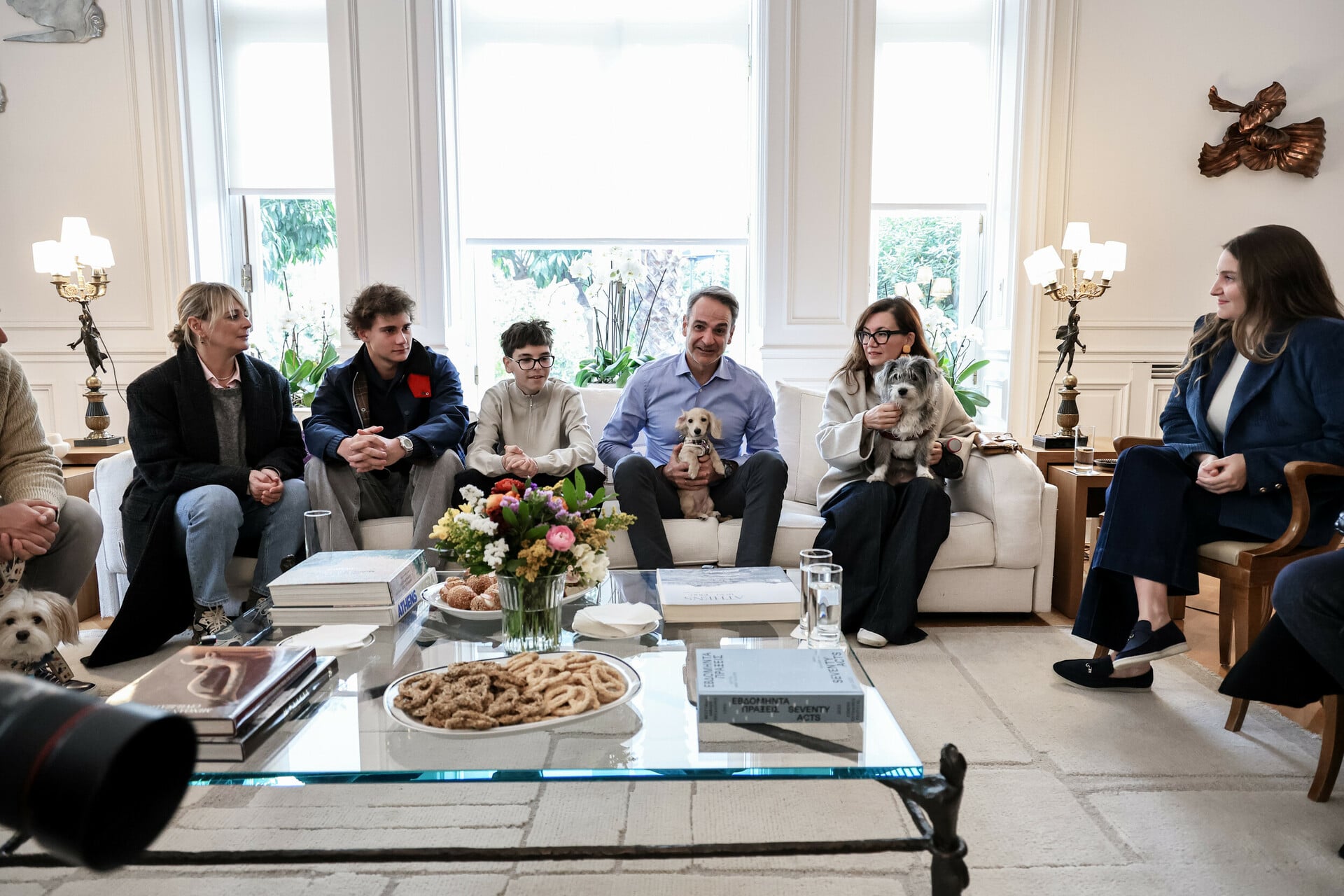 Ο Κυριάκος Μητσοτάκης υποδέχθηκε στο Μέγαρο Μαξίμου, Έλληνες πολίτες που επαναπατρίστηκαν από τη Μέση Ανατολή μαζί με τα ζώα συντροφιάς τους, μέσω της ειδικής πτήσης που οργάνωσε το υπουργείο Εξωτερικών σε συνεργασία με την Aegean.