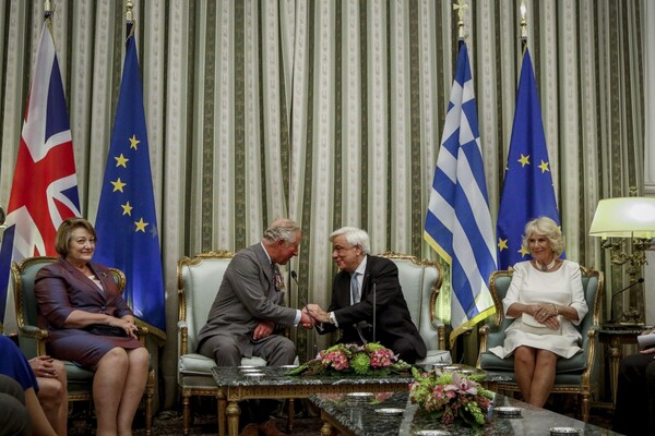 Στο Προεδρικό Μέγαρο υποδέχθηκε ο Πρόεδρος της Δημοκρατίας Προκόπης Παυλόπουλος τον πρίγκιπα της Ουαλίας Κάρολο και τη σύζυγό του, δούκισσα της Κορνουάλης, Καμίλα που έφτασαν το μεσημέρι στη χώρα μας στο πλαίσιο της τριήμερης επίσκεψής τους.