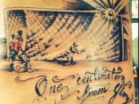 Ο Πινίγια, γνωστός λάτρης των τατουάζ, δεν έχασε χρόνο και «χτύπησε» το τατουάζ γράφοντας από κάτω: ''ένα εκατοστό από τη δόξα''.