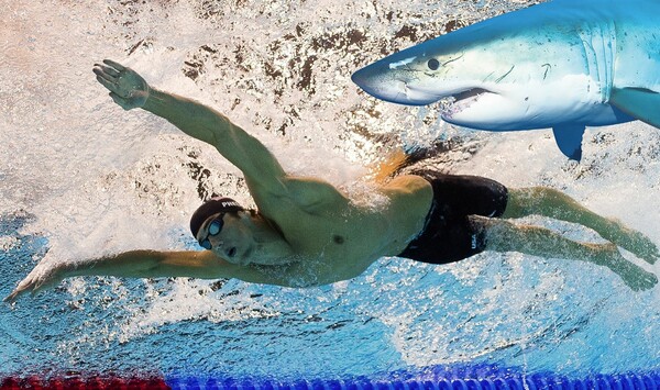 Με δεδομένο ότι οι λευκοί καρχαρίες μπορούν να φτάσουν ακόμη και τα 25 μίλια την ώρα, είναι πολύ λογικό ο χρυσός Ολυμπιονίκης να μην είναι για πρώτη φορά στη ζωή του το φαβορί της κούρσας. Για το λόγο αυτό θα χρειαστεί να επιστρατεύσει κάθε βοήθεια που μπορεί.