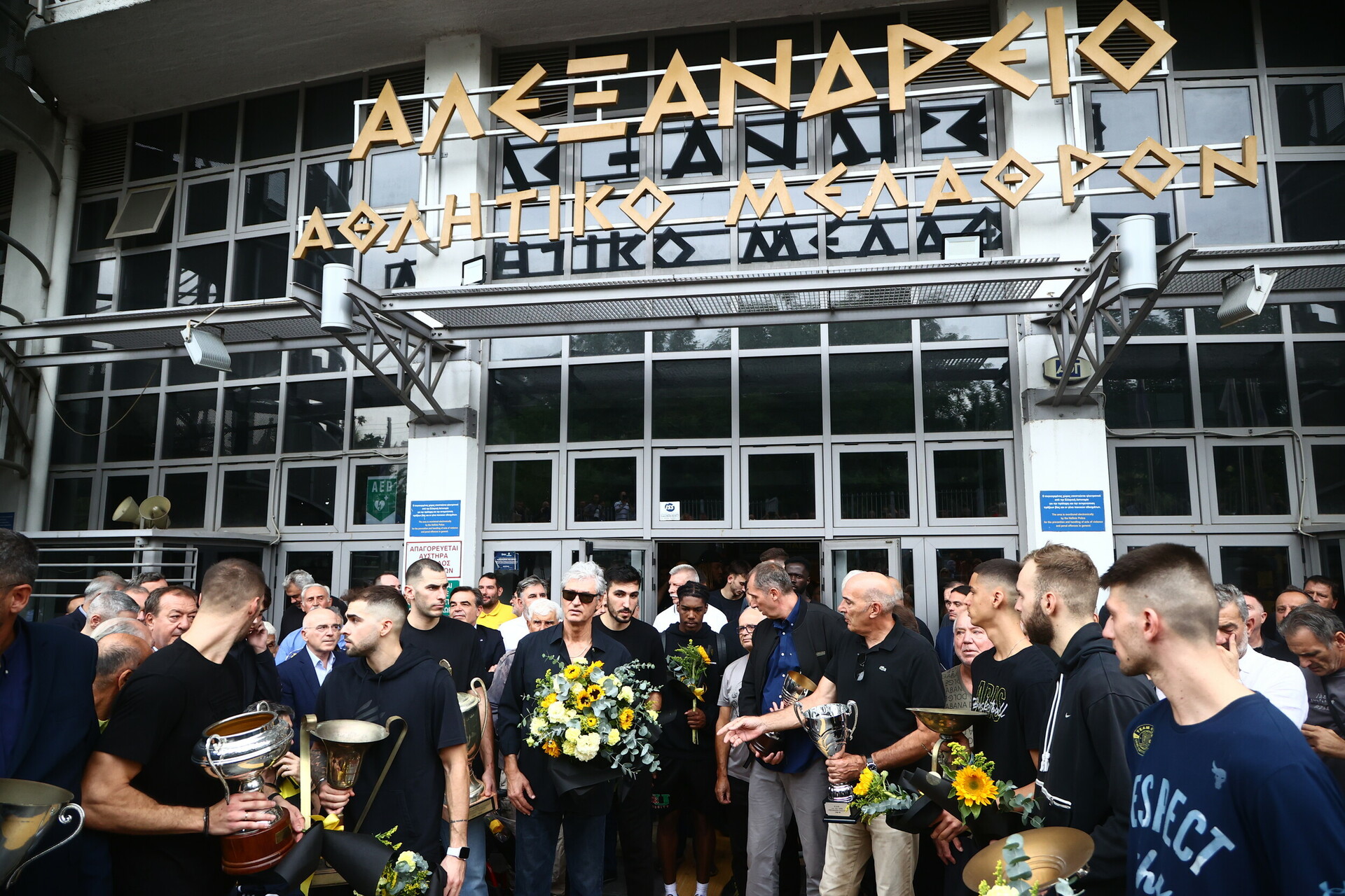 Πλήθος κόσμου έχει συγκεντρωθεί στο Αλεξάνδρειο Μέλαθρο για να πει το τελευταίο αντίο στον «ξανθό» του ελληνικού μπάσκετ, Γιάννη Ιωαννίδη.