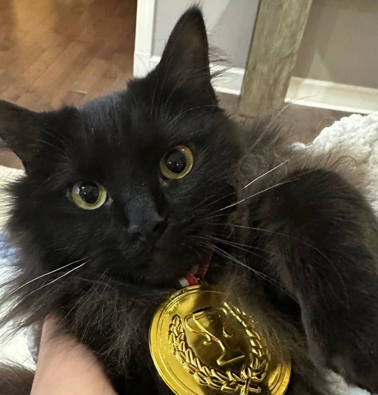 Ilia’s cat wearing a gold medal is content we LOVE. 🐈⬛🥇