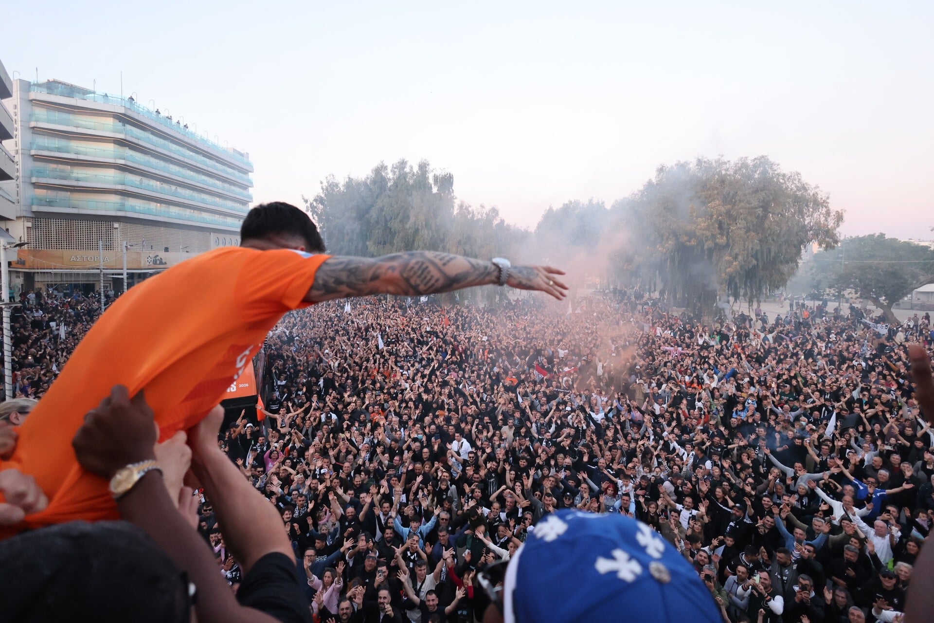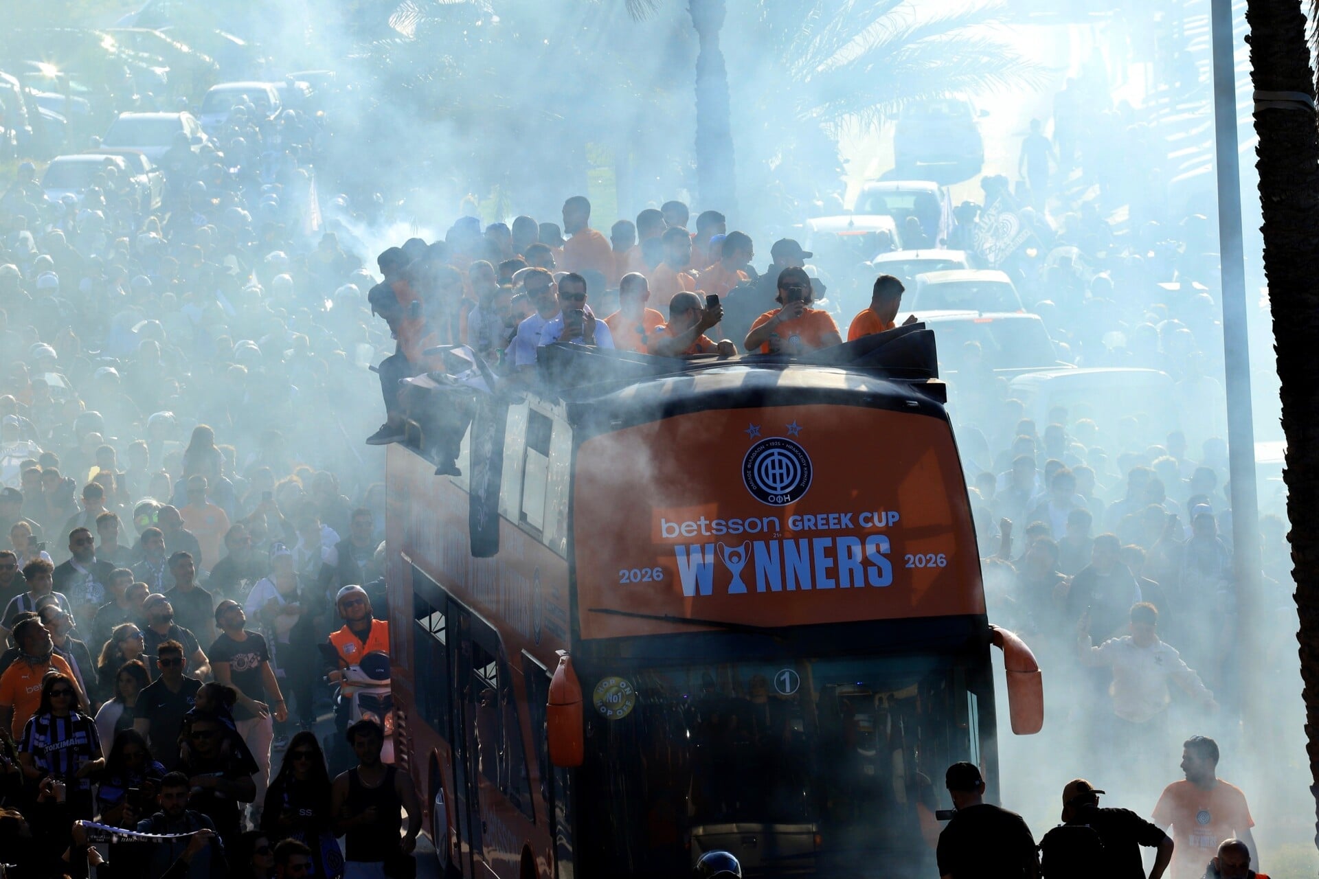 Καπνογόνα και πυρσοί στους πανηγυρισμούς για την κατάκτηση του Κυπέλλου Ελλάδας / Φωτ.: Eurokinissi