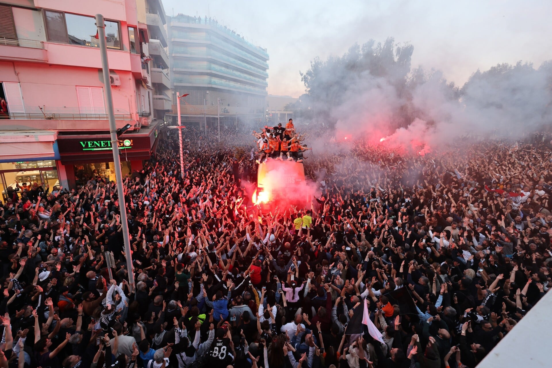 Το πούλμαν του ΟΦΗ μέσα στο πλήθος του Ηρακλείου / Φωτ.: Eurokinissi