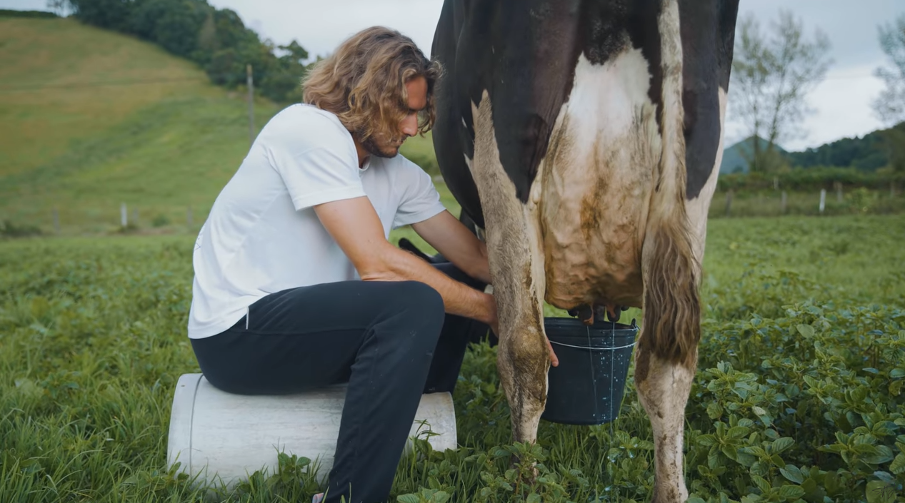Ο Στέφανος Τσιτσιπάς ταξίδεψε στις Αζόρες και δεν έχασε την ευκαιρία να πιει γάλα από την «πηγή»: άρμεξε μία αγελάδα και ενθουσιάστηκε με τη γεύση που δοκίμασε.