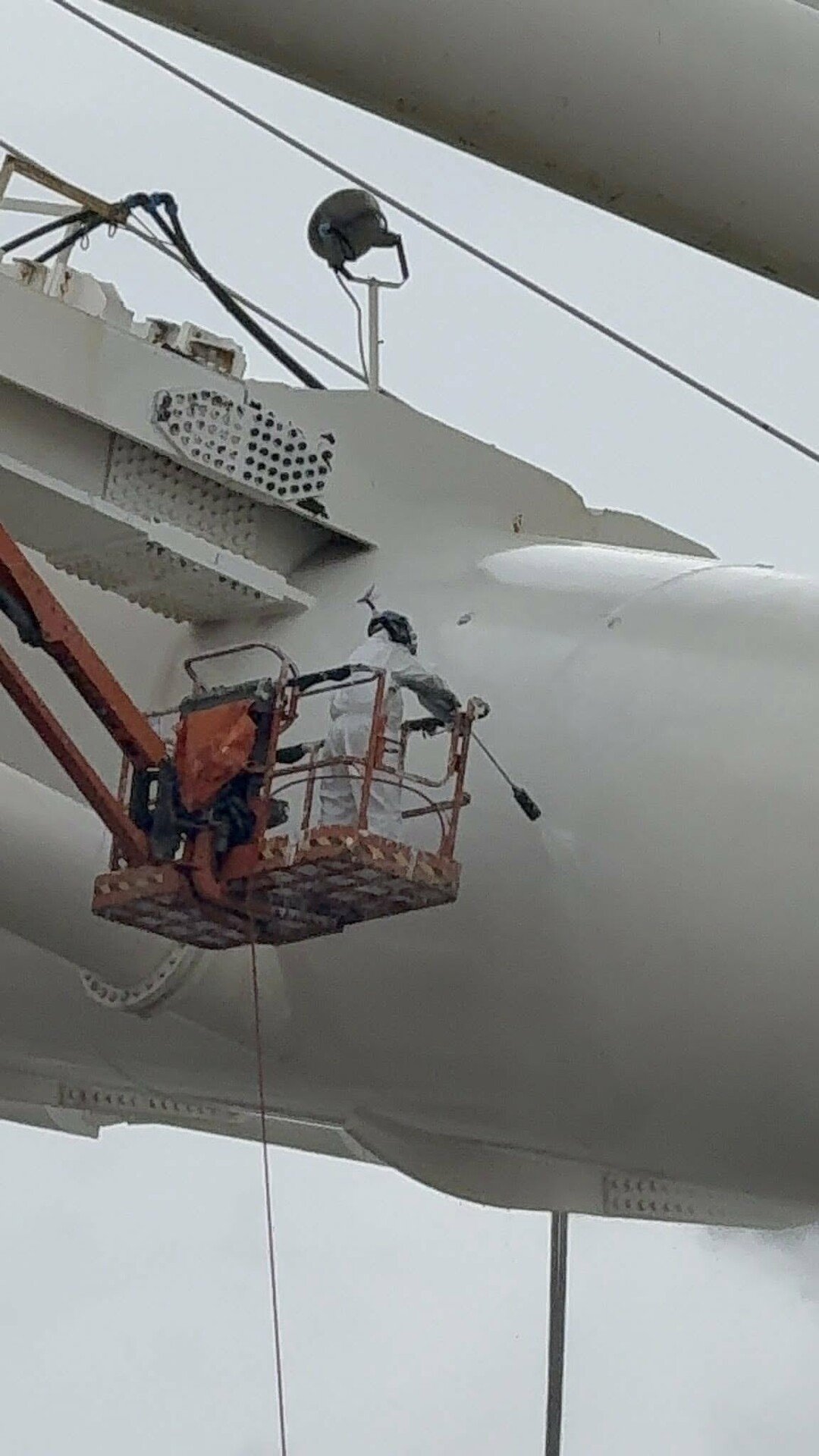 Η μέθοδος αυτή εξασφαλίζει μηχανικό καθαρισμό χωρίς επιφανειακές αλλοιώσεις, διατηρώντας την ακεραιότητα του χάλυβα και δημιουργώντας την κατάλληλη επιφάνεια πρόσφυσης για την επόμενη φάση επαναβαφής. Μετά την υδροβολή, εφαρμόζεται πολυεπίπεδο σύστημα βαφής υψηλής αντοχής, με αντιδιαβρωτικά και ελαιοφοβικά χαρακτηριστικά, το οποίο ανταποκρίνεται στις κλιματικές και περιβαλλοντικές απαιτήσεις της περιοχής.