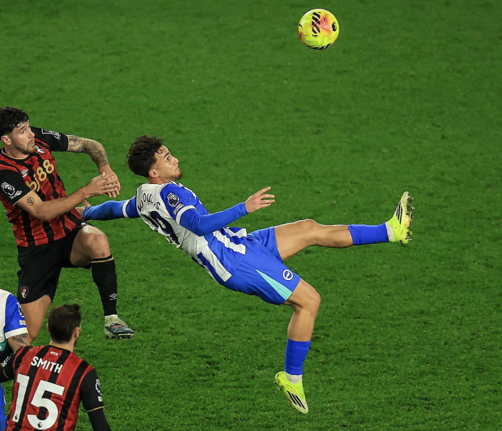 Μια επαφή με το στήθος του έδωσε χρόνο να προετοιμαστεί για ένα άρτιο ανάποδο ψαλίδι το οποίο έκανε τους φιλάθλους στο Amex Stadium να ζητωκραυγάσουν.