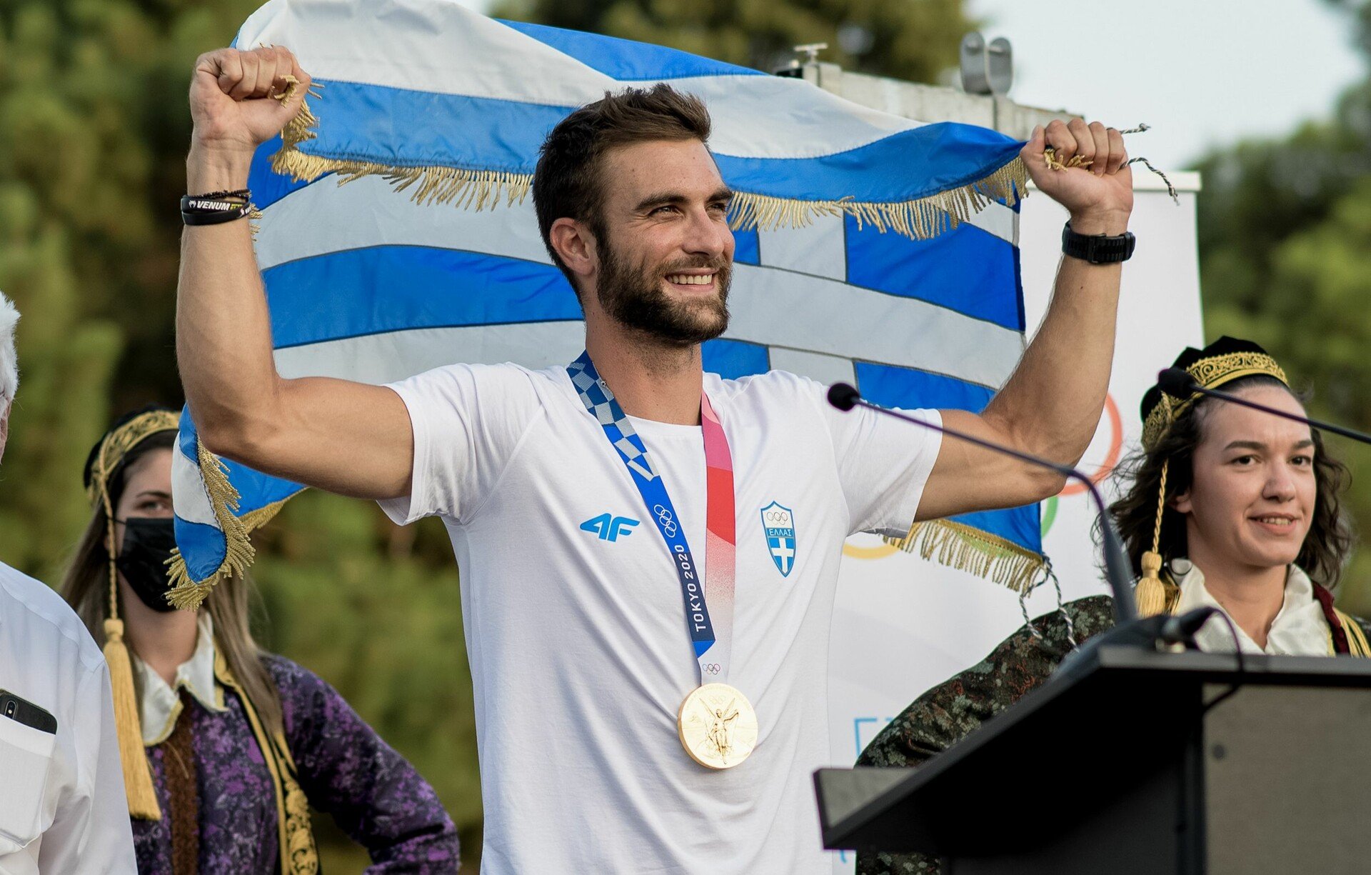 Φωτογραφία από την υποδοχή για του «χρυσού» Ολυμπιονίκη Στέφανου Ντούσκου, το 2020 / Eurokinissi