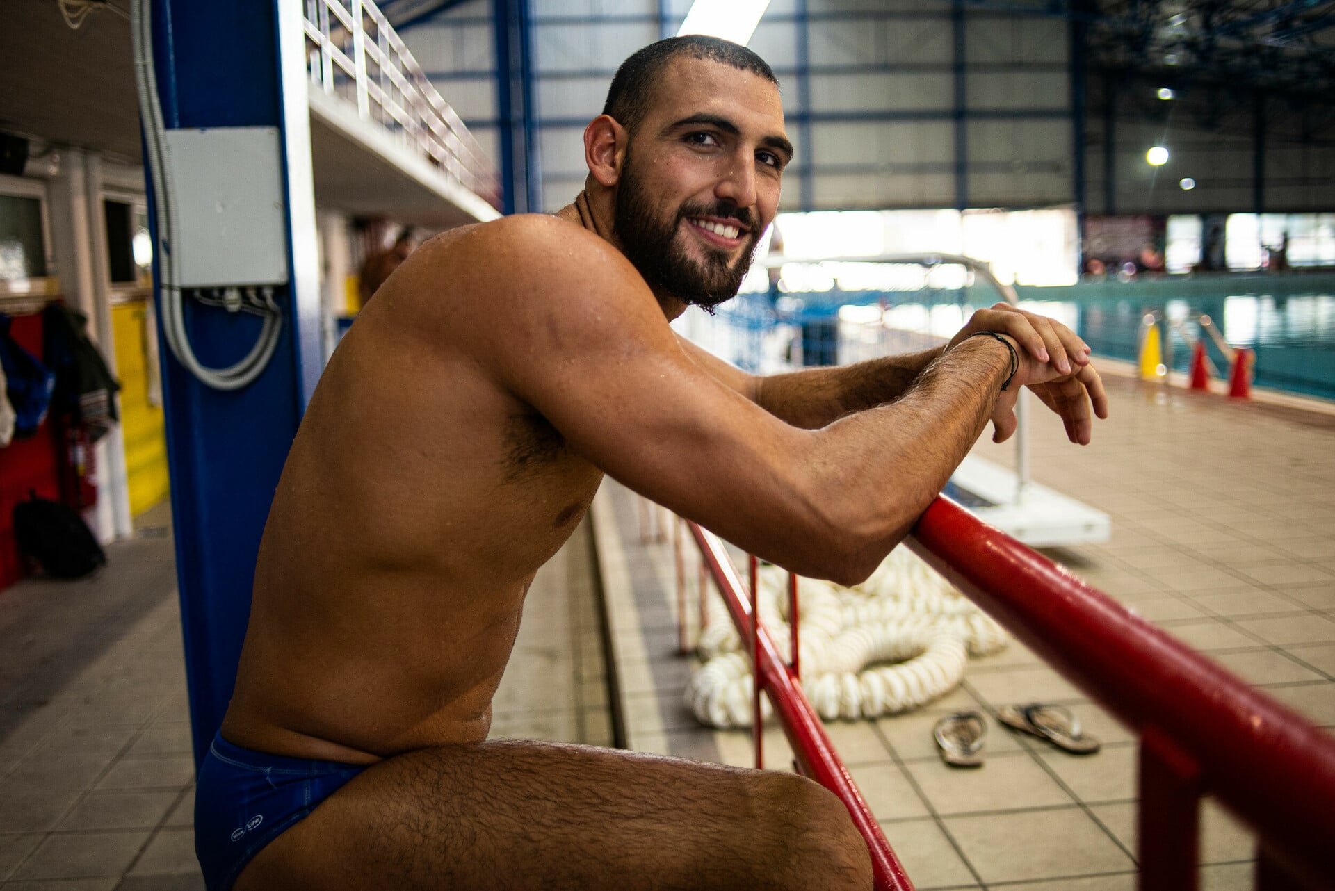 Οι δώδεκα γίγαντες μας ευχαριστούν. Σιγά-σιγά συγκεντρώνονται για να αρχίσουν την προπόνησή τους. Στέκονται παραταγμένοι, ο ένας δίπλα στον άλλον, μπροστά στην πισίνα. Το σφύριγμα ακούγεται. Παίρνουν βαθιά ανάσα και βουτάνε για τον στόχο.