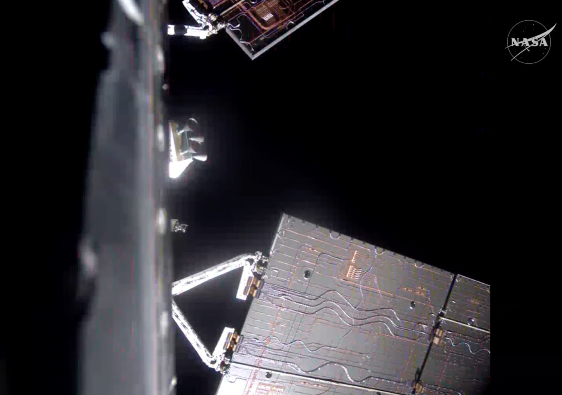 Μια άποψη του διαστημοπλοίου Orion της NASA μετά την ολοκλήρωση της διορθωτικής καύσης εξερχόμενης πορείας, η οποία βελτιστοποίησε την τροχιά του σκάφους προς τη Σελήνη. Το Orion, μεταφέροντας το τετραμελές πλήρωμα της αποστολής Artemis II, πρόκειται να πραγματοποιήσει κοντινή διέλευση (flyby) πάνω από την αθέατη πλευρά της Σελήνης τη Δευτέρα, 6 Απριλίου.