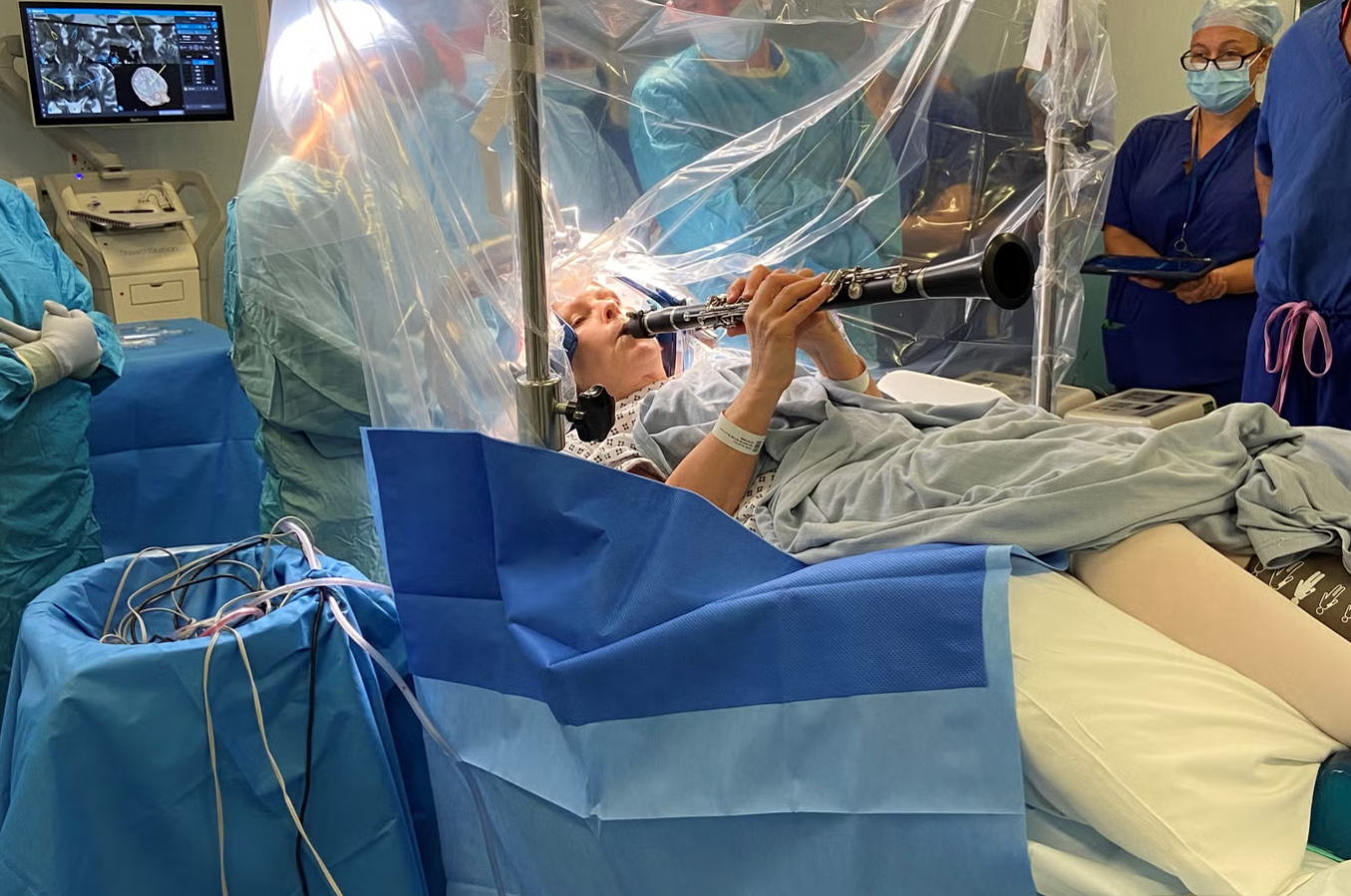 Βρετανίδα που ζει με τη νόσο Πάρκινσον έπαιξε το κλαρινέτο της κατά τη διάρκεια εγκεφαλικής διέγερσης, προσφέροντας στους χειρουργούς άμεση απόδειξη της επιτυχίας της διαδικασίας.