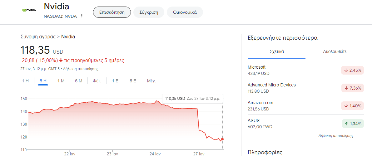 Νωρίτερα τη Δευτέρα, η DeepSeek εκθρόνισε το ChatGPT για να γίνει η πιο δημοφιλής δωρεάν εφαρμογή στις ΗΠΑ και το Ηνωμένο Βασίλειο στο App Store της Apple. Η φαινομενικά αναπάντεχη έλευση του DeepSeek, αιφνιδίασε και επηρέασε τον ανταγωνισμό, προκαλώντας πτώση στις μετοχές τεχνολογικών κολοσσών όπως οι Nvidia, Microsoft και Meta, καθώς και των ευρωπαϊκών χρηματιστηρίων.